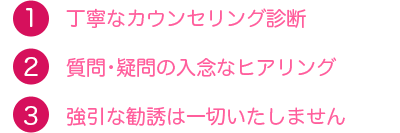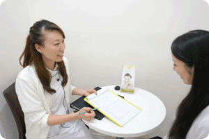 ご予約日にご来院いただきましたら問診票のご記入のお願いをいたします。安全・確実に処置を行うために当院の医療レーザー脱毛についてご説明といくつかのご質問をさせていただきます。患者様も聞きたいことがあればご遠慮なくお尋ねください。