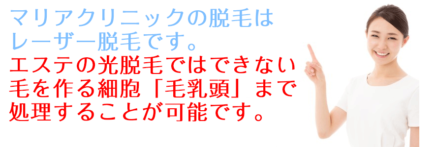 使用機器においてもマリアクリニックがレーザー脱毛で主に利用する機器は米政府機関から効果・安全性の承認を得ているアレキサンドライトレーザーを搭載した機器を使用して行います。