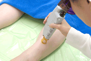 目を保護した状態で照射を開始いたします。使用するレーザーには冷却装置も搭載しているため激しい痛みを感じることはございません。所要時間は部位によって異なりますが10~30分ほどで完了するケースが多数です。